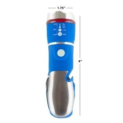 Powerful COB magnetic work light has three modes: white COB light, red LED light, and blinking red LED light. Magnet with metal ring for hands free illumination. Retractable telescopic flashlight with 3 LED white light with a magnetic head. Head extends 16in. Includes 3 AAA batteries.