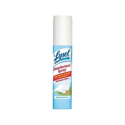 Prevent mold and mildew for up to a week with this disinfectant. The Crisp Linen scent keeps rooms smelling fresh and clean, while the compact size lets you conveniently carry this disinfectant in a purse or backpack. This Lysol spray To Go 1-ounce disinfectant eliminates odor at the source by killing up to 99.9 percent of bacteria, viruses and fungi.