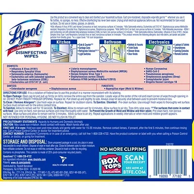 Kills 99.9% of viruses and bacteria, including cold and flu viruses, Salmonella, E. Coli, MRSA, RSV, Staph, and Strep, when used as directed on hard, non-porous surfaces.