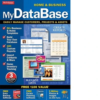 With easy setup and installation, more than 50 pre-designed database templates for both business and home, and 100 custom reports, MyDatabase™ Home & Business gets you started fast! Manage customers, vendors, and projects while tracking assets for insurance claims