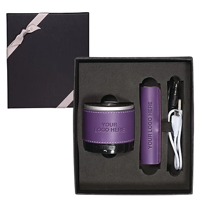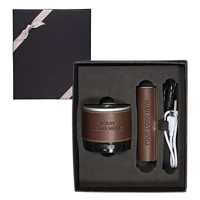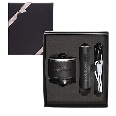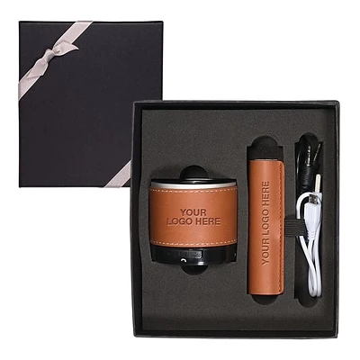 Includes the Tuscany™ Bluetooth® Cylinder Mini Speaker and the Tuscany™ Cylinder Power Bank emergency charger