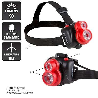 The 2 Led Headlamp By Wakeman Outdoors is a comfortable and compact head light selection which will make you forget that you are even wearing a headlight in the first place! The water resistant light, which also features an adjustable head strap and moving light inclination is a great option for both indoor and outdoor usage.