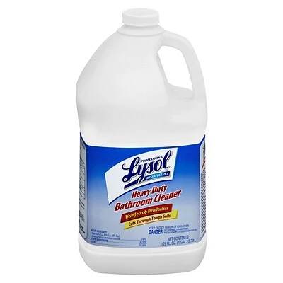 Use this professional, non-abrasive disinfectant to bring a new look to almost any bathroom surface. Each of these concentrated gallons of disinfectant can be used to create 32 gallons of standard strength cleaner, increasing the time between reorders while keeping public restrooms free of soap scum and water stains. This Professional Lysol heavy-duty bathroom disinfectant leaves behind a pleasant lime scent so guests know the restroom is freshly cleaned.